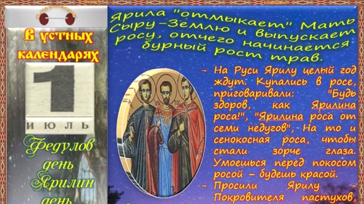 1 июля - Традиции, обычаи и поверья, связанные с этим днём. Все праздники, которые отмечаются в этот день в разных календарях.