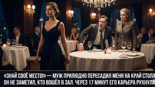 «Знай своё место!» — муж прилюдно пересадил меня на край стола. Он не заметил, кто вошёл в зал. Через 17 минут его карьера рухнула