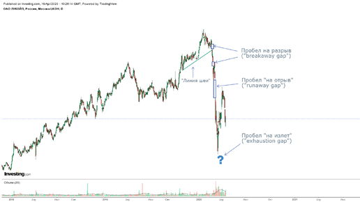 Здравствуйте дорогие читатели! В статье детально и предметно разбираем дальнейшее поведение цен на акции компании Лукойл. Исторически они находились в восходящем тренде, но время "быков" пока прошло и вот почему: В данной статье не будет традиционных указаний на линии тренда, их прорывы, price action, поскольку есть куда более интересные, значимые и определяющие дальнейшее движение цен факторы. Достаточно распространенное явление на графике - гэпы, обычно они сразу заполняются. Все так, сразу заполняются простые гэпы...