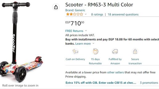 В данной статье я хочу поделиться своим опытом возврата товара и денег, купленных в Amazon.eg с наличной оплатой при получении. Я заказала самокат Пришло не совсем то, что указано на фото, но это меня не сильно волновало. Так сложиось, что мое знание Английского языка оставляет желать лучшего, но и в общем, для ребенка 11 лет он оказался маленкий. Вот что пришло: похоже, но не совсем. Поняв что он нам не подходит, я подала заявку на возврат. к стати делается это легко. Заходим в Your Orders, находим...