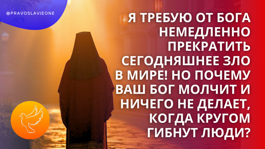 Я требую от Бога немедленно прекратить сегодняшнее зло в мире! Но почему ваш Бог молчит и ничего не делает, когда кругом гибнут люди?