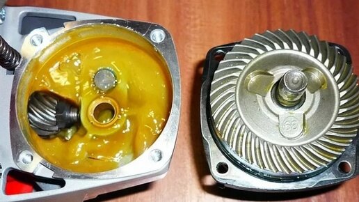 Недавно одна из моих болгарок на 150 мм диск перестала работать, точнее – двигатель работает, но диск не крутится. Болгарке лет 6-7, повидала многое. Сразу подумал, что причина поломки в редукторе, и скорее всего, придется менять шестеренки. И действительно, раскрутив редуктор (четыре болта со стороны крепления диска), что просто сломалась ведущая шестерня. На фото указано отверткой данная шестерня. Она просто лопнула и болталась свободно. На самом деле, все не так страшно, как может показаться на первый взгляд...