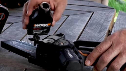 Автоматическая смазка цепи в зависимости от толщины спиливаемых веток. Здравствуйте уважаемые читатели. Вы точно знаете, что цепь пилы необходимо смазывать, перед тем как пилить. И когда смазывали цепь руками замечали, что это не очень удобно. А иногда вообще забывали ее смазать. И это проблема с большими последствиями. Этих последствий можно избежать с помощью аккумуляторной мини пилы WORX WG325. Я уверен, что ее следует приобрести. Я докажу это с точки зрения удобства использования, безопасности и инноваций...