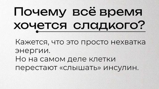 Почему нас часто тянет на сладкое?  Кажется, что просто хочется “подзарядиться” - быстро перекусить чем-то сладким, чтобы стало легче и бодрее. ‼️Но на самом деле это не про энергию, а про сбившийся обмен веществ.  📌Когда мы часто едим сахар, уровень глюкозы в крови подскакивает, а инсулин старается вернуть его в норму. ⚠️Со временем клетки перестают “слышать”...
