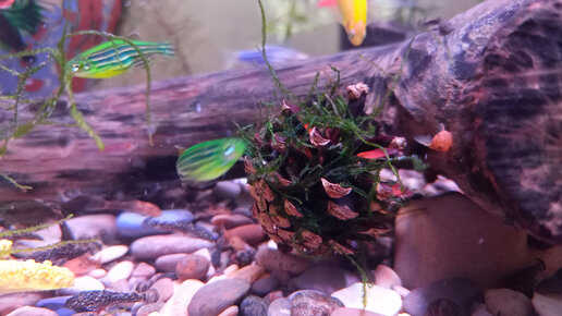 Продолжаю попытки зафиксировать яванский мох в аквариуме.