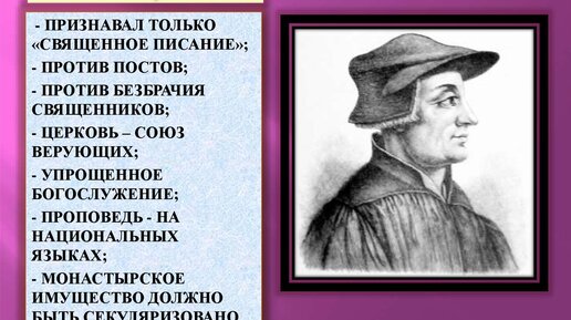 Цвинглианство -одно из радикальных течений Реформации, религиозное движение протестантизма, основатель - религиозный реформатор Ульрих Цвингли (1484–1531 гг.); получило распространение в Швейцарии и Южной Германии. Во второй половине XVI в. объединилось с кальвинизмом. Цвинглианство имеет много общих черт с лютеранством. Основные этапы цвинглианской Реформации: Вероучение Ульриха Цвингли: За пределами Швейцарии ни одна из церквей не считает Ульриха Цвингли своим основателем. Ученые не пришли к...