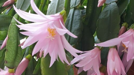Зигокактус он же Декабрист это несколько разновидностей одного и того же растения. Каждый сорт имеет характерную форму и размер соцветий, оригинальные оттенки, листовые пластины большей и меньшей длины и даже периоды цветения могут отличаться. Наш товарищ на пятом году жизни решил цвести в мае и продолжает нас радовать своими неповторимой красотой именно в это время года больше трех лет. Почему биологические часы у него перевелись мы не знаем. Соблюдаем железно правило-когда бы он не зацвел, его нельзя беспокоить, иначе бутончики опадут...