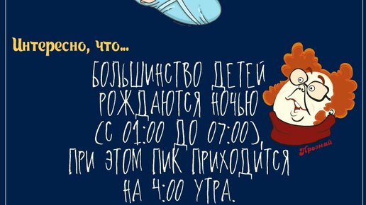 Большинство детей рождаются ночью (с 01:00 до 07:00), при этом пик приходится на 4:00 утра. Источник