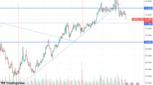 Позавчера курс доллара прорвался вниз через восходящий тренд, вдоль которого он рос целый месяц. Похоже, что это может привести к новой волне укрепления рубля, которая уже началась. Несмотря на то, что в конце прошлой недели курс разносило во все стороны в ожидании новых ограничений, на этой неделе ему все-таки удалось пробиться вниз и прервать девальвацию рубля. Как же далеко он может спуститься? Вот уже более месяца рубль упорно дешевеет по отношению к доллару, и начинает складываться впечатление, что процесс упорной девальвации рубля опять начался и уже вряд ли сможет остановиться...