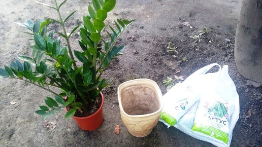 Нашла время, чтобы пересадить долларовое дерево из магазинного горшка. Вечнозелёную пальму подарили с мужем маме на день рождение. Растение с экзотическим названием замиокулькас ланцетовидный явно вырос из пластикового кашпо. Стояла тёплая погода, поэтому работы перенесли во двор. В домашних условиях тесновато, да и пачкать не хотелось. Почему отдала предпочтение долларовому дереву Выбирала растение я. Главным критерием стала теневыносливость. Продавщица в цветочном магазине предложила на выбор долларовое дерево разных размеров...