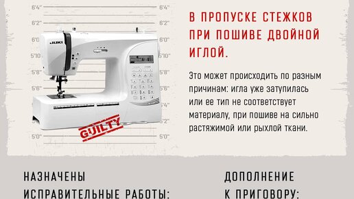Двойная игла пропускает стежки