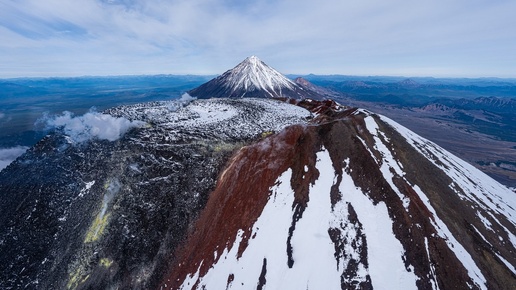 В Петропавловске-Камчатском мне говорили так: «а где ещё ты утром с чашкой кофе выйдешь на балкон — а перед тобой вид на три вулкана?». Соглашусь, что мне неизвестны такие геолокации, где с балкона жилого дома можно наблюдать сразу три стратовулкана. Два вулкана — наверное, можно в окраинах Сиэтла, но чтобы три сразу — мне такое неведомо. А вот столица Камчатки смотрит [в хорошую погоду] на три (или даже четыре, как повезёт) внушительные вулканические постройки. Вот эти вулканы (сопки) поимённо: Ааг (его почти не видно, и он не считается), дальше идёт абсолютно идеальный конус Корякской сопки...