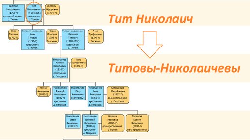 Про двойные фамилии наших предков я уже делал несколько публикаций. Чаще всего к старым родовым именам XVII-XVIII вв. добавлялись современные фамилии, которые некоторое время существовали вместе. Но вот так, чтобы у крестьянина две части фамилии появились сразу, встречается редко. В деревне Петровке Веневского уезда с самого её основания в 1829 году проживала семья крестьян Николаичевых. В метрических книгах они были записаны то как Николаичевы, то как Титовы. Вот, например, запись о рождении Ивана в 1916 году...