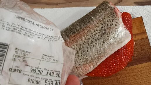 Именно так поступал когда-то в далекой молодости в местах, где красной рыбы было в изобилии, наш дед. Считается, что мясо самок с икрой значительно теряет во вкусе. Он весь в икру уходит. Поэтому для засолки брали только самцов. Из самок же извлекали икру, а мясо считали продуктом бросовым, оно шло на уху, в основном. А то и вовсе, о ужас, отдавалось котам! Представляете? Я, если честно, сейчас себе такое даже вообразить не могу! Рыба стала золотая. Карельская форель у нас по акции по 550 - 600 рубликов...