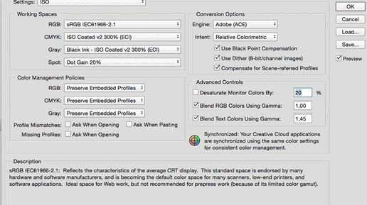 Как настроить управление цветом в фотошопе - что поставить в Color Settings?