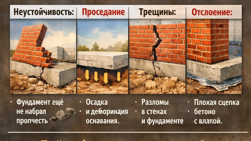 🏃♂️ Поспешный старт: почему нельзя сразу строить стены на свежезалитом фундаменте