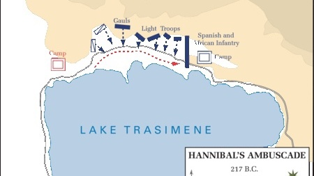 Гай Фламиний в 223 году (здесь и далее все даты до новой эры) в должности консула разбил 50-тысячное войско инсубров в долине реки Пад. Со слов Орозия в битве погибло 9000 галлов и 17 000 были взяты в плен. В 220 году он в должности цензора построил в Риме цирк Фламиния и Фламиниеву дорогу, которая соединила Рим с Аримином через территории Этрурии и Умбрии. В 217 году был вновь избран консулом от плебса и возглавил римскую армию, направленную на борьбу с Ганнибалом. Учитывая одержанную победу над...