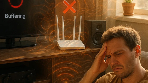 Купил мощный роутер, поставил в “удобное место” — а интернет всё равно лагает? В одной комнате — летает, в другой — будто вернулся в 2009-й. Видео тормозит, Zoom зависает, YouTube переключается на 144p. Знакомо? Причина чаще всего не в технике, не в тарифе и не в “злых провайдерах” — а в том, где именно стоит роутер. Почему плохо: Звук = вибрации. Электроника = помехи. Часто всё воткнуто в один удлинитель — получается электромагнитная каша. Wi-Fi в таком хаосе просто теряется. Отодвинь роутер от техники хотя бы на 30–50 см...