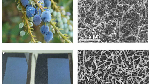 (Результаты: химия. «ХиЖ» 2025 №2) Ответ на вопрос в заголовке кажется очевидным — в кожице ягоды много антоцианов, они и придают такой цвет. Однако этот ответ неверен: пигмент в ягодах красный, это видно по цвету сока. А синими они становятся благодаря наноструктурам в воске, покрывающем ягоды. Такая структурная окраска делает синими многие плоды, от слив до ягод можжевельника. Устройство соответствующих наноструктур изучили британские ученые из Бристольского университета во главе с Роксом Мидлтоном (Rox Middleton)...