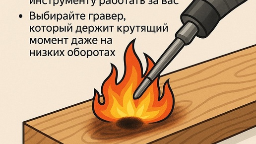 Почему горит дерево при работе гравёром и как этого избежать 🔥🌳 При резьбе по дереву многие сталкивались с тем, что поверхность начинает темнеть, а иногда и подгорать. Почему так происходит? Основные причины: Слишком высокие обороты → древесина не режется, а обугливается. Слабый инструмент теряет мощность на низах и перегревает заготовку. Неправильная насадка или чрезмерное давление...