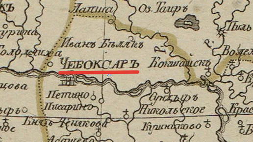 Чебоксары на карте 1799 года. Чебоксары стали называть Чебоксарами не более 100 лет назад. До революции употреблялась мужская форма единственного числа с твердым знаком на конце - чебоксаръ. (Где ты живешь? - В чебоксаре) Давайте, я сразу Проведу параллель, которые многие не замечают...