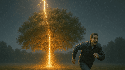 На первый взгляд гроза — просто красивое природное явление. Но за яркими вспышками скрывается смертельная опасность. Многие инстинктивно ищут укрытие под деревом, не зная, что это одно из самых опасных мест во время грозы. Дерево может сыграть роль гигантского громоотвода, превращаясь в смертельную ловушку. Ниже — пять реальных историй, которые доказывают: лучше промокнуть, чем укрываться под ветвями деревьев. Молния — это не просто электрический разряд. Это канал с температурой до 30 000 °C, в пять раз горячее поверхности Солнца...