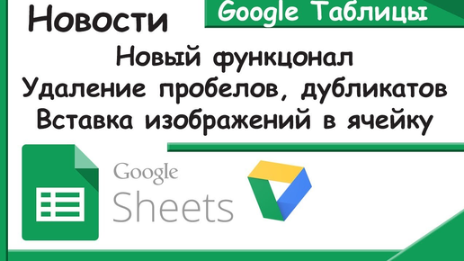 На официальном портале посвященном всем сервисам Google вышло несколько новых очень полезных обновлений. Теперь пользователи Гугл Таблиц смогут удалять пробелы и дубликаты через меню интерфейса самих Гугл таблиц, а так же теперь можно будет вставлять изображения прямо в ячейку, без использования функций Image Теперь что бы удалить пробелы или удалить дубликаты в Google таблице, необходимо просто выделить необходимый вам диапазон значений и в панели инструментов выбрать “Данные” , а после нажать либо “Удалить дубликаты” либо “Удалить пробелы“...