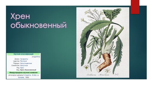 А сейчас я расскажу вам про хрен! Нет! Ну, а что?! Там все не так просто, как вам кажется. А по ходу рассказа, буду вставлять рецепты из кулинарных книг, с хреном конечно. Вот например, что вы о нем знаете? Что он родственник капусты? Или что растет по брошенным дачам? Что крайне легко расселяется и чрезвычайно сложно выводится? Что класть его нужно в банку с огурцами солеными, если листочком? А из корня делают хренодер, объединяя с помидорами? Ну, в общем и целом, все так. Отметим, что как огородная культура хрен считается не только бесполезным, но и вредным из-за своей агрессивности...
