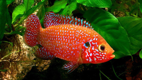 Хромис (хемихромис) красавец (латинское название Hemichromis bimaculatus) является одним из самых красивых и агрессивных видов цихлид. Правда, свою агрессивность красный хромис проявляет в отношении миролюбивых рыб: данио и гуппи, а также во время нереста. Поэтому хромиса следует содержать в одном аквариуме с рыбой, похожей по характеру и размеру. Среда обитания Встречается хромис в Африке, в основном в западных районах. Обитает в придонных и средних слоях рек. Питанием для него являются насекомые, беспозвоночные, мелкие рыбы и мальки...