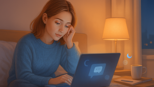 Когда советы из интернета не работают, Айлина идёт другим путём. Она пробует обсудить проблему сна с GigaChat. И получает неожиданный эффект. Ночь. За окном тихо. В комнате полумрак от экрана ноутбука. Айлина ловит себя на том, что уже третий вечер подряд засыпает далеко за полночь. Смотрит на часы и мысленно вздыхает: «Почему я снова не сплю? Ведь завтра рано вставать...» Проблема пока кажется новой — вроде бы случайность, но повторяющаяся. Вроде и устала, и спать хочется, но голова продолжает прокручивать события дня, вспоминать дедлайны, выстраивать планы...