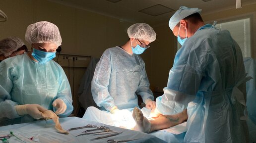 Я слева, учусь у сосудистого хирурга выполнять операцию