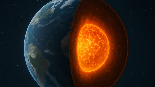 Глубоко под нашими ногами скрыт раскалённый мир. Внутреннее ядро Земли разогрето до шести тысяч градусов — почти как поверхность Солнца. Именно оно делает нашу планету живой и защищённой. Но что если однажды оно остынет? Когда Земля только формировалась из облака пыли и камней, её нагревали три процесса: В итоге Земля получила ядро из железа и никеля с температурой ~6000 °C. Движение этого раскалённого металла порождает магнитное поле, которое работает как щит: оно отклоняет солнечный ветер — поток частиц, летящих от Солнца...