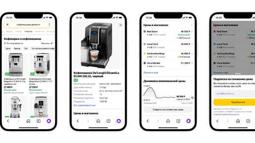 Выбрать удачный момент для запланированной покупки стало проще. В поиске Яндекса по товарам теперь можно посмотреть, как менялась их стоимость. Минимальная цена, по которой за последнее время продавался нужный пользователю товар, показана в его карточке. Наглядный график помогает решить, делать покупку сейчас или есть смысл подождать. В карточке товара можно подписаться на уведомления о снижении цены. Когда заинтересовавший пользователя телевизор, монитор, камера или, например, смартфон подешевеет, об этом поступит сообщение...