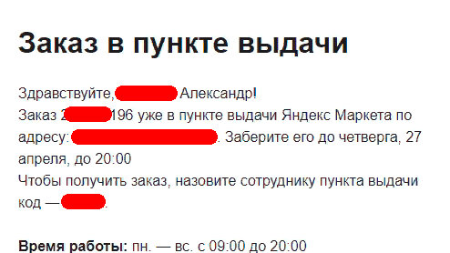 Яндекс Маркет рассылает коды для получения чужих заказов и персональные данные