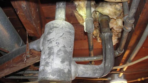 Рассказ об особенностях канализации старых американских домов, начатый мной здесь, был бы не полон без упоминания вот этой штуковины: Появилась она в американских домах еще во времена Марка Твена (конец XIX - начало ХХ века). Обратите внимание на подачу воды и выпуск канализации из ванны: А теперь смотрите, что в полу под ванной: Выпуск ванны объединяется с переливной трубой и подключается к этой самой штуковине (только здесь она медная, а не свинцовая, как на фото выше). Это так называемый Drum Trap (барабанная ловушка)...