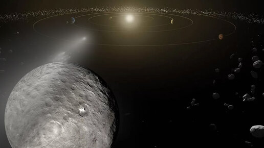 Пояс астероидов – интересное космическое пространство Солнечной системы, расположенное между орбитами Марса и Юпитера, наполненное ледяными и каменными обломками. Огромное количество космических осколков, занимающих огромное пространство от 2,2 до 3,6 астрономических единиц, дрейфуют по орбите вокруг Солнца, напоминая нам о том, какое бурное прошлое было у нашей Солнечной системы. В данной области космического пространства можно встретить как совсем крошечные обломки, так и достаточно массивные тела, например, как Церера диаметром около 950 километров...