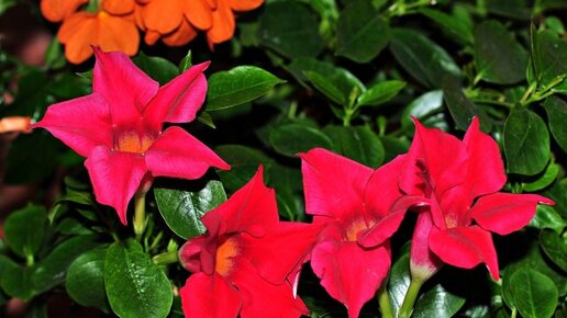 Вьющееся цветущее растение мандевилла (Mandevilla), либо дипладения является частью семейства Кутровые. В природных условиях такое растение можно повстречать на территории Центральной и Южной Америки. По различным сведениям данный род объединяет 120–190 видов, среди которых встречаются как однолетники, так и многолетники. Многие садоводы комнатную оранжерейную и садовую мандевиллу еще именуют жасмином, или бразильским бальзамином, или чилийским жасмином, или боливийской розой, или мексиканским деревом любви...