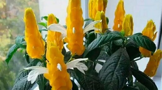 В природных условиях Индии и Южной Америки этот цветок растет как двухметровый кустарник. У нас его выращивают в виде небольшого горшечного растения. Этот экзот хорошо знаком любителям комнатных цветов - пахистахис. Пахистахис ценится за необычные цветки напоминающие кукурузный початок или большой колос. Соцветие насыщенного желтого цвета (бывает красного) с белыми цветками, похожими на креветок. Пахистахис с красными прицветниками встречается немного реже. Цветет пахистахис с ранней весны до поздней осени...