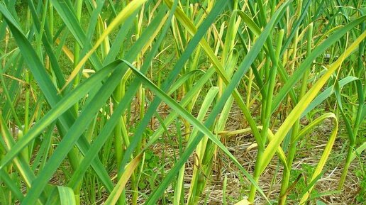 Желтеют листья у чеснока / Что делать? / Первая подкормка озимых чеснока и лука