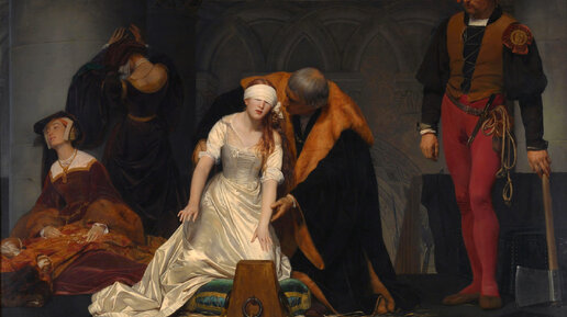 На этом полотне изображена молодая женщина в кремовом перламутровом наряде. Вот только окружающий пейзаж не соответствует такому платью — это место больше похоже на тёмное подвальное помещение. Да и глаза у героини картины почему-то завязаны. Давайте попробуем разобраться, что же здесь происходит. Произведение носит название — «Казнь Джейн Грей». Его создал французский живописец Поль Деларош, который любил писать картины по мотивам реальных исторических событий. Не стала исключением и эта работа, изображающая Джейн Грей — правнучку короля Генриха VII...