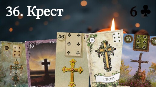 Здравствуйте! С вами Арина, и мы подходим к финальной, 36-й карте Старого Аркана — карте Крест. Это символ, несущий в себе самые глубокие смыслы: судьбу, испытание и духовную ношу. В гадании на картах Ленорман ее появление знаменует момент, когда наша воля встречается с волей судьбы. Визуал этой карты очень стабилен: в центре мы всегда видим большой, массивный крест. Он может быть окружен цветами, свечами или другими деталями, но фокус неизменно на нем. Это напоминание о чем-то неизбежном, выходящем за рамки повседневности, о ноше, которую необходимо нести...