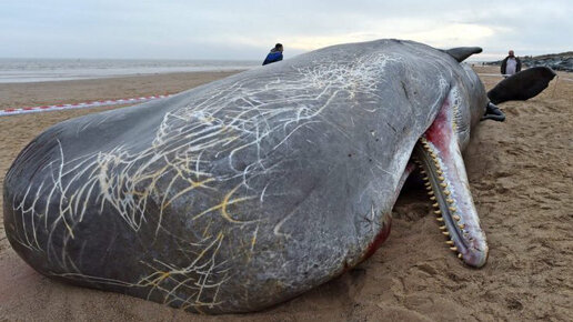Жестокий урок для зевак В том же 2004 году море выбрасело на берег огромного кишелота...