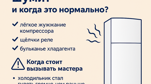 Многие переживают, когда их холодильник начинает «жужжать» или «клацать». Но не всегда это поломка! Тихое жужжание компрессора (он качает фреон).