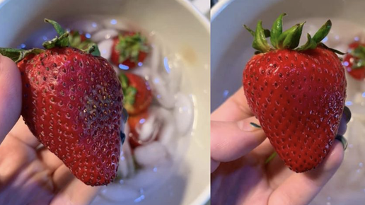Мы все попадали в такую ситуацию: достаем, к примеру, контейнер с сочной и яркой клубникой и находим… морщинистых и пятнистых "злодеев", которые не совсем выглядят аппетитно. К счастью, пользователь Facebook поделилась секретом, как заставить эти ягоды выглядеть снова свежими и как вернуть им былую сочность вкуса. Пользователь Facebook, Бриттани Кинг, поделилась этим секретом (хотя, как она отметила, на самом деле мы должны хвалить ее подругу Лилли!), который включает в себя только ведро ледяной воды...