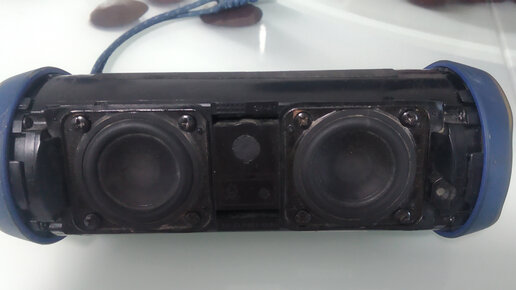 Вот такую портативную колонку попросили посмотреть. "Уронили". Больше не работает. Не включается. Это я ещё на кухне разбирал)). Далее. Разбор. Попутно удалил мусор с динамиков. Трудно так разбирается, не поймёшь, где откуда куда. После разбора, посмотрев под лупой... заметил,что "уронили" не прошло бесследно...