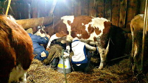 Жизнь в селе Тулата5276 читали · 6 лет назадПодписатьсяКак наша корова - первотёлка привыкает к доильному процессу.В конце ушедшего года разродилась у нас первотёлочка Ласка. Родила она сама, без нашей помощи. Пришли утром на дойку, а телёнок уже лежит на сене.