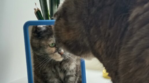 Каждый истинный кошатник хоть раз в жизни должен взять своего мяукающего питомца на руки, поднести к зеркалу и сказать: "Смотри, это ты!" Признаюсь честно, я так тоже несколько раз делала. Однако моя Буся наотрез отказывалась разглядывать свое отражение и просто отворачивалась от зеркальной поверхности. А порой еще так недовольно смотрела на меня, словно говорила: "Хозяйка, ты чего меня тут в стекло тычешь? Ты в своем уме?" А ведь, действительно, кошки не сильно любят любоваться на свое отражение...
