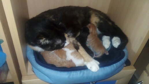 Наши две кошки одновременно окотились и стали воровать друг у друга котят