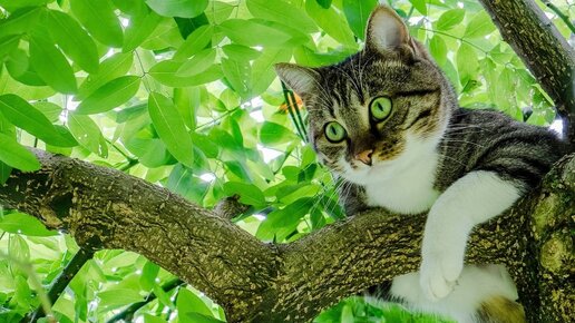 Кот на дереве. Кошки лазят по деревьям. Атмосферное осеннее видео