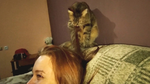Внимательный хозяин замечает повадки членов семьи. Случается и такое, что некоторые привычки котенка, который только попадает в дом, не поддаются объяснению. Одна из таких заключается в облизывании или жевании волос хозяина, а чаще всего хозяйки. Данная привычка не портит здоровье, не наносить увечья, но всё-таки доставляет небольшой дискомфорт человеку. При всей чистоплотности кошек изо рта у них часто бывает не особо приятный запах. Уж точно не фиалки. И после облизываний или жевания хозяйка вынуждена мыть голову, потому что на волосах остается запах питомца...